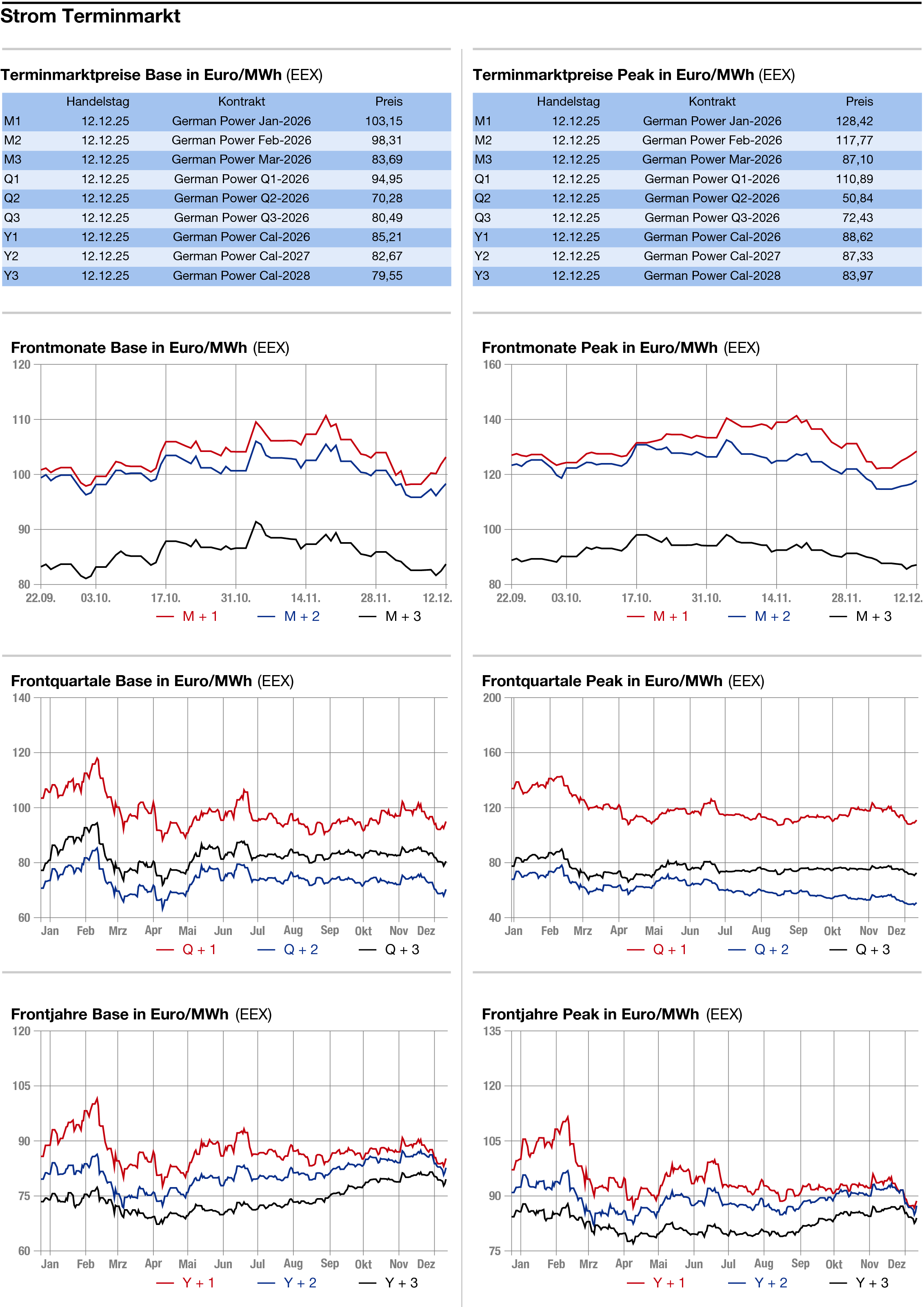 Am langen Ende gewann das Strom-Frontjahr unter dem Eindruck festerer Gaspreise 1,19 Euro auf 84,91