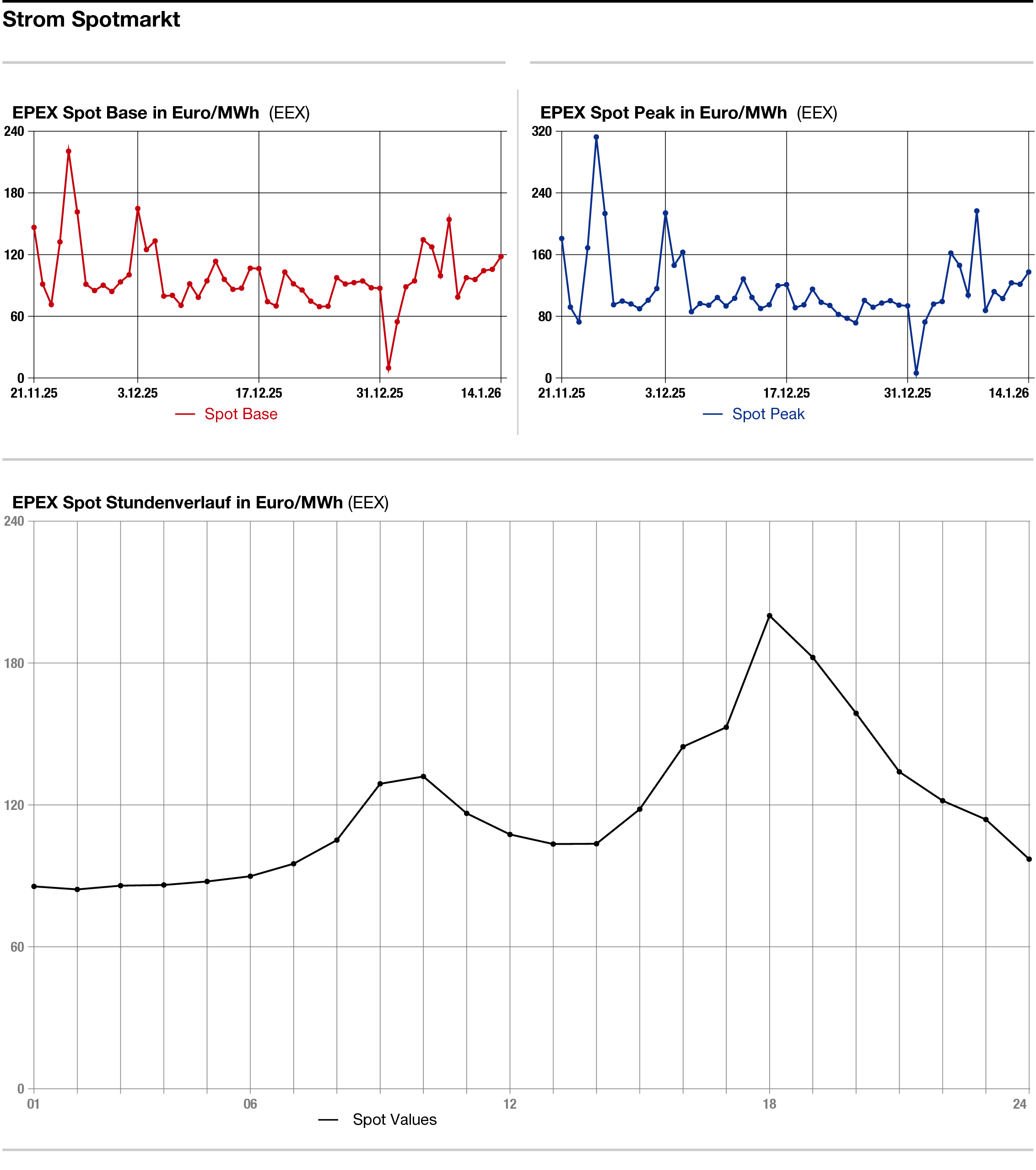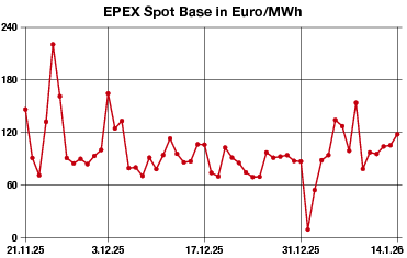 Maßgeblich für den Preisanstieg am Strommarkt sind die geopolitischen Spannungen insbesondere um den Iran, die auch die Preise des Primärenergieträgers Erdgas nach oben ziehen. Das US-Wettermodell geht mittlerweile von einer neuen Kältewelle in Deutschland aus, die ab kommenden Dienstag die Temperaturen immer weiter nach unten treiben dürfte. Diese könnten laut den US-Meteorologen bis zu 8 Grad Celsius unter das Durchschnittsniveau fallen.