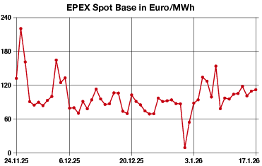Euro je Megawattstunde gesehen. Für den Peak war bis zum Nachmittag kein Handel zustande gekommen. Die Meteorologen von Eurowind rechnen für den Montag mit einer Einspeiseleistung der Erneuerbaren von 19,5