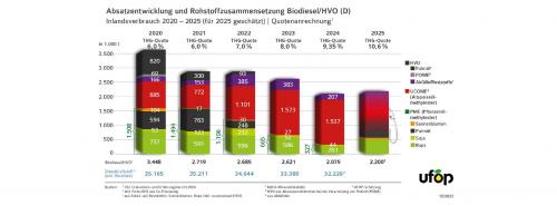 Absatzentwicklung und Rohstoffzusammensetzung Biodiesel/HVO (zum Vergrößern bitte auf die Grafik klicken) Quelle: UFOP |