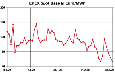 Euro je Megawattstunde in der Day-ahead-Auktion ermittelt worden. Händler führen den Preisanstieg vom Freitag auf Montag auf die deutlich geringere Einspeiseleistung der Erneuerbaren zurück, die für den ersten Arbeitstag der neuen Woche prognostiziert wird. So rechnen die Meteorologen von Eurowind für den Montag mit 19