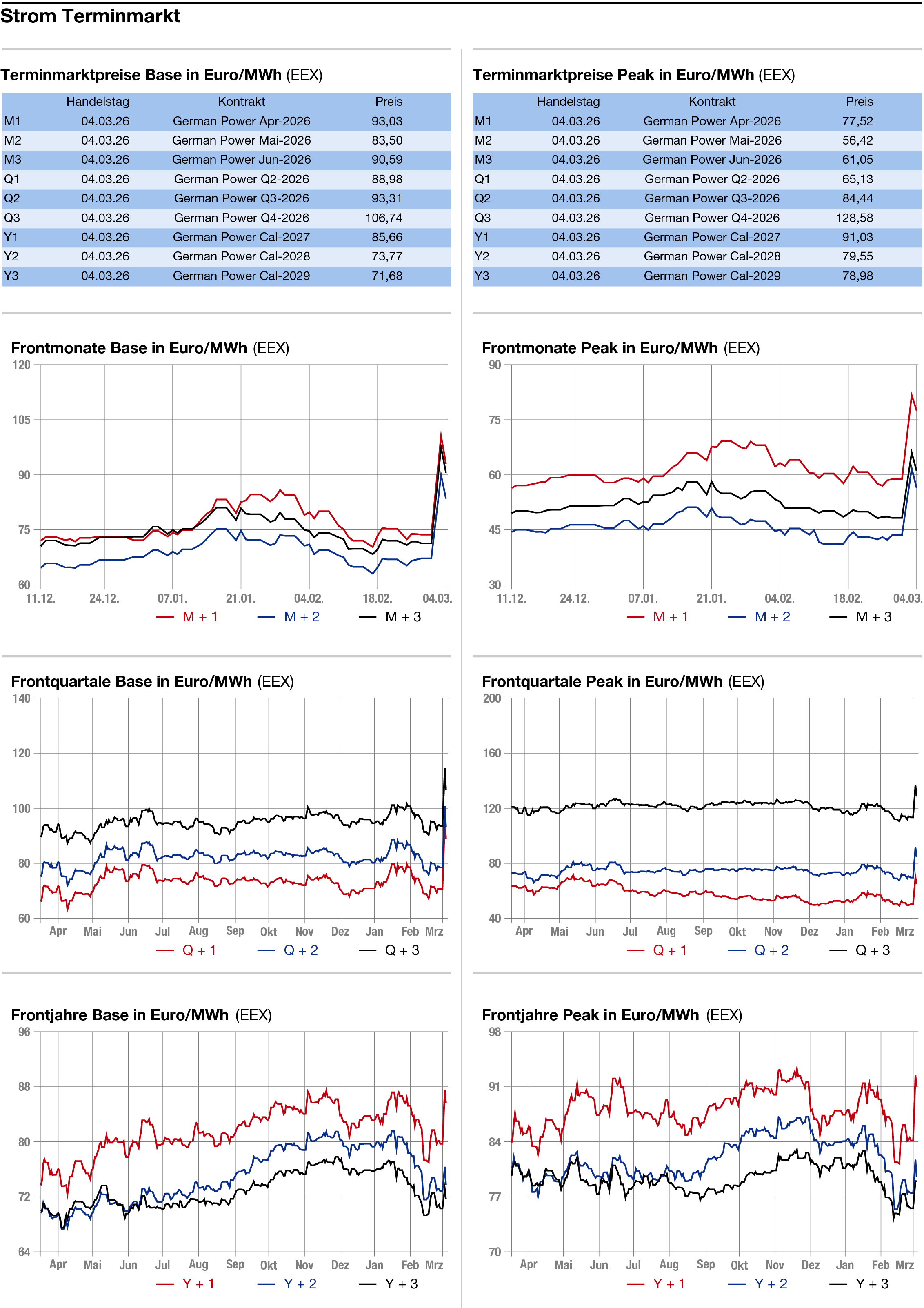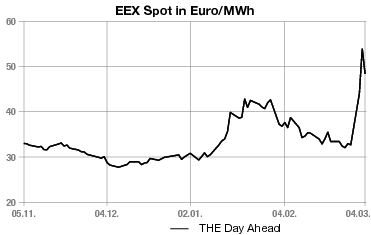 Euro je Megawattstunde und in der Spitzenlast 47,50 auf 94,75