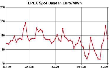 Euro je Megawattstunde. An der Börse kostete der Donnerstag 110,86