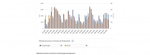 | Entwicklung des deutschen Redispatches 2022 bis 2025. Zur Vollansicht bitte auf die Grafik klicken Quelle: Smard.de |