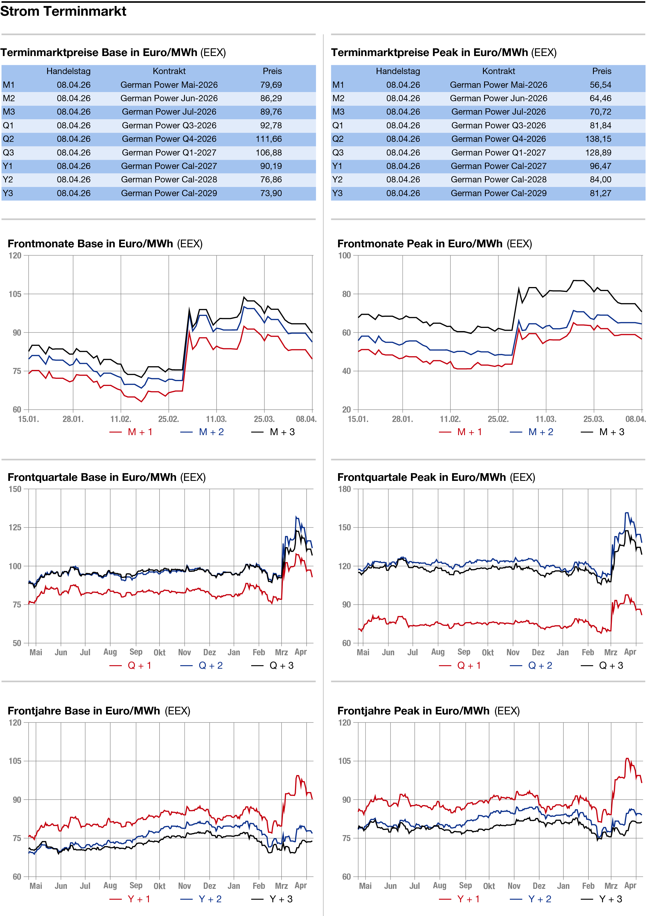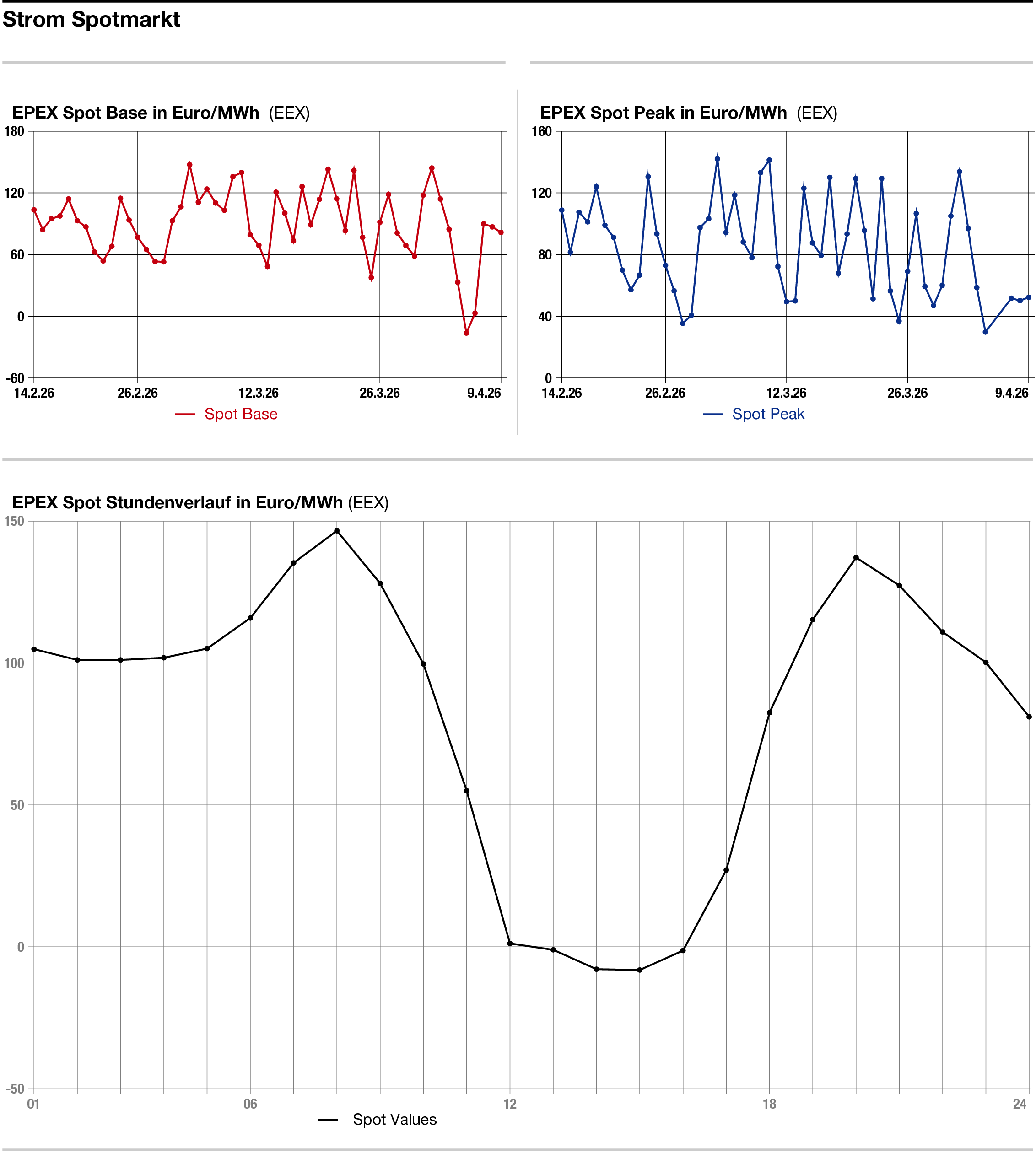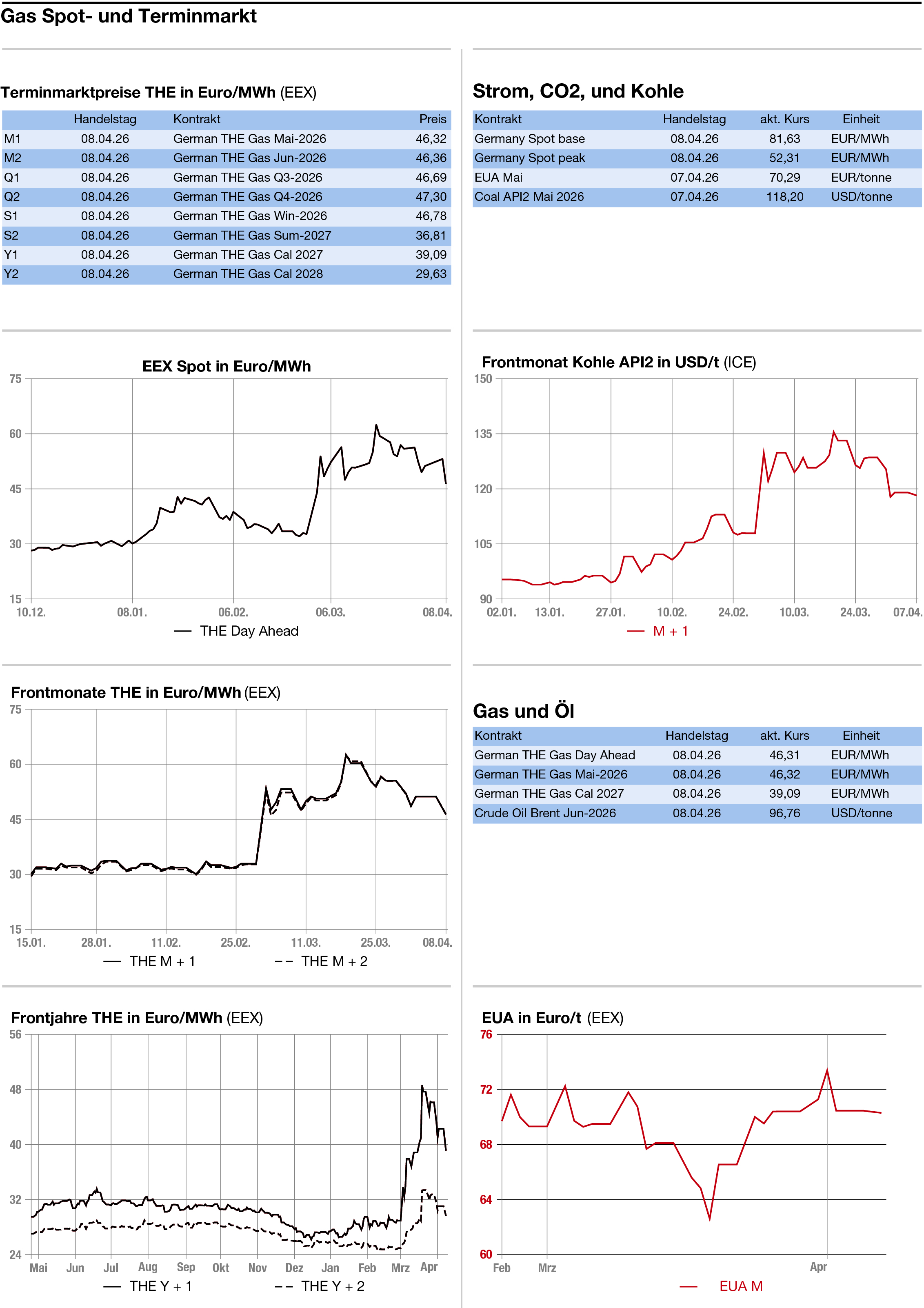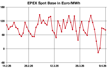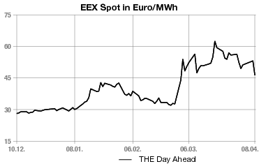 Erdgas: Der Day-ahead-Preis für den kontinentalen Leitkontrakt an der niederländischen TTF sank ebenfalls deutlich. Der Frontmonat Mai verlor bis gegen 14.00 Uhr 7,425 Euro auf 45,075 Euro je Megawattstunde. Auch a, deutschen THE ging es für den Day-ahead nach unten (s. separaten Marktkommentar.)